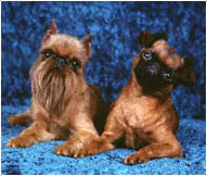 O grifo de Bruxelas é descendente do affenpinscher alemão e do cão de rua belga, para produzir no século XVII o grifo, um cão de pelagem áspera. No século XIX o grifo foi cruzado com o pug, produzindo a variedade de pelagem lisa. A raça tornou-se comum em passeios e supostamente guardando táxis belgas. No final de 1800, a raça havia entrado nas exposições de cães da Bélgica; sua popularidade cresceu e, no início de 1900, eram procurados pela classe alta belga. O primeiro grifo de Bruxelas foi registrado no American Kennel Club em 1910. Esses cães pequenos fazem parte do grupo dos brinquedos e são um excelente animal de estimação.
