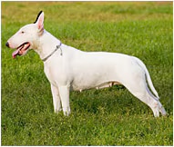 Os Bull Terriers foram desenvolvidos na Inglaterra durante o século XIX. Por volta de 1835, um cruzamento entre o antigo terrier inglês e o bulldog produziu o Bull Terrier. Mais tarde cruza para o Ponteiro Espanhol; ainda mais tarde, para o terrier inglês branco e o dálmata, produziu um cão branco, elegante e resistente. Em meados de 1800, a versão branca da raça, conhecida como “cavaleiros brancos”, tornou-se o animal de estimação favorito entre a pequena nobreza. Os cruzamentos com o Staffordshire Bull Terrier reintroduziram a cor por volta de 1900.
